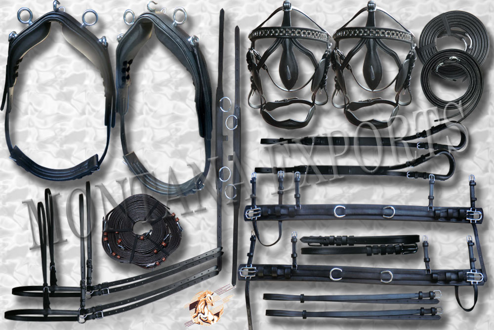 Komplett mit Kopfstücken,Kammdeckel Brustblätter , Schweifriemen, Bauchgurte, Zugstränge , Fahrleine